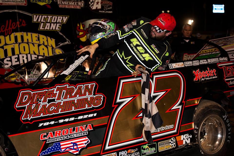 Emerging from an early side-by-side battle for the lead with Ross Bailes that lasted for several laps, Mt. Holly, N.C., driver Chris Ferguson took the point and rolled to a $10,000 victory in a 60-lap Schaeffer’s Oil Spring Nationals (presented by Sunoco Race Fuels) event held March 23 at Cochran Motor Speedway.